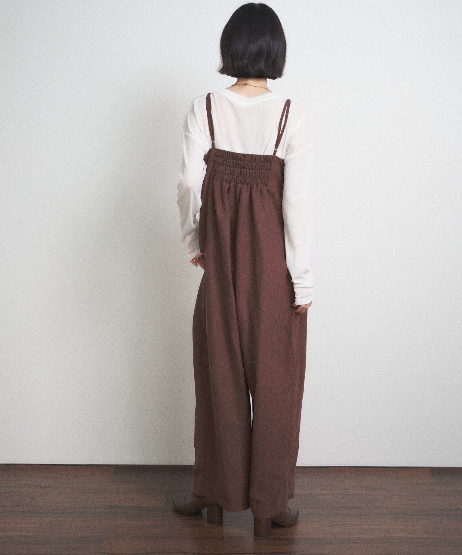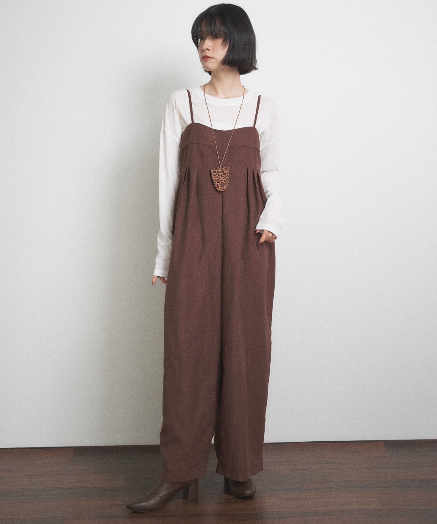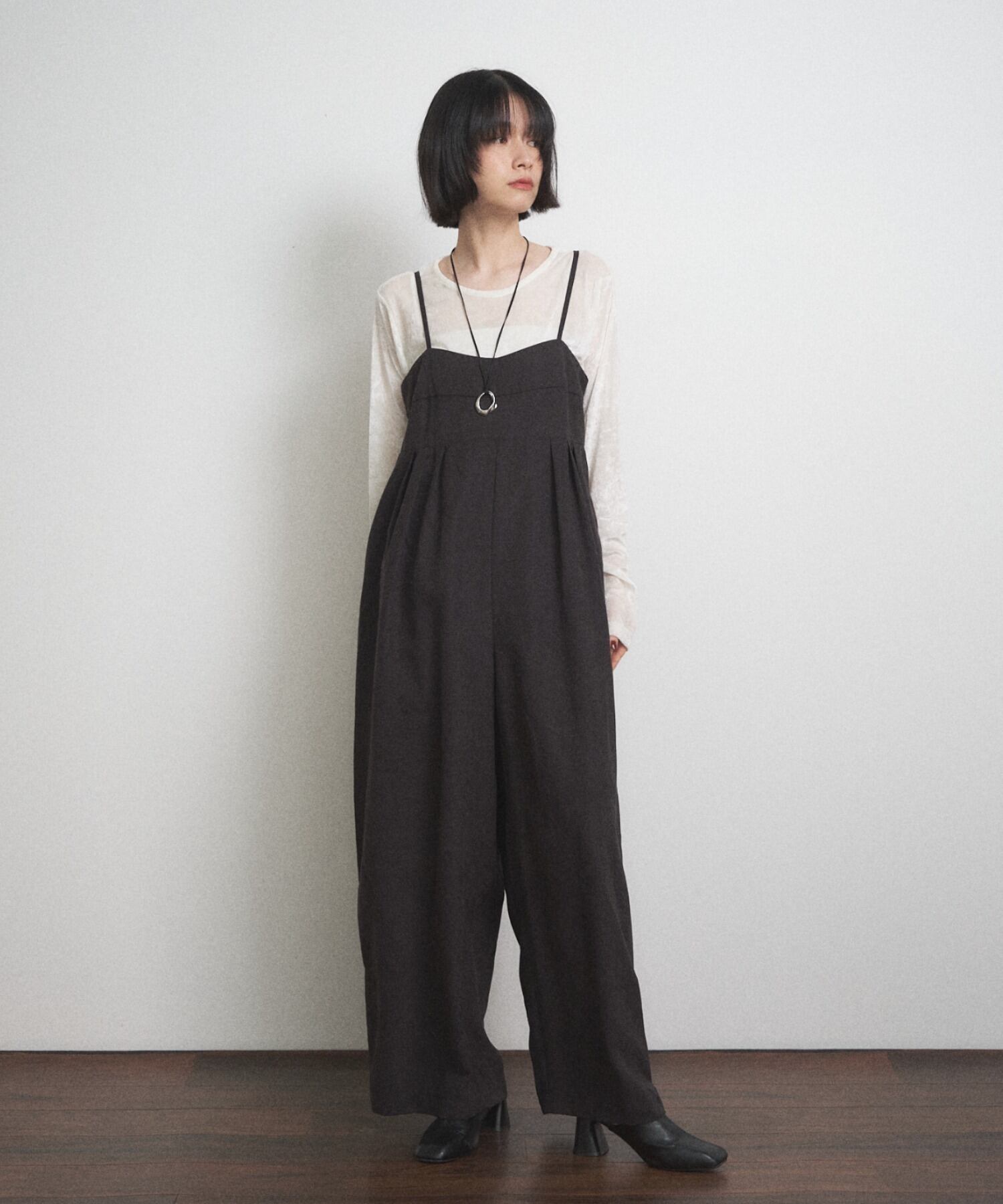 ・体のラインを拾わずすとんと美しい縦ラインを演出するキャミサロペット。