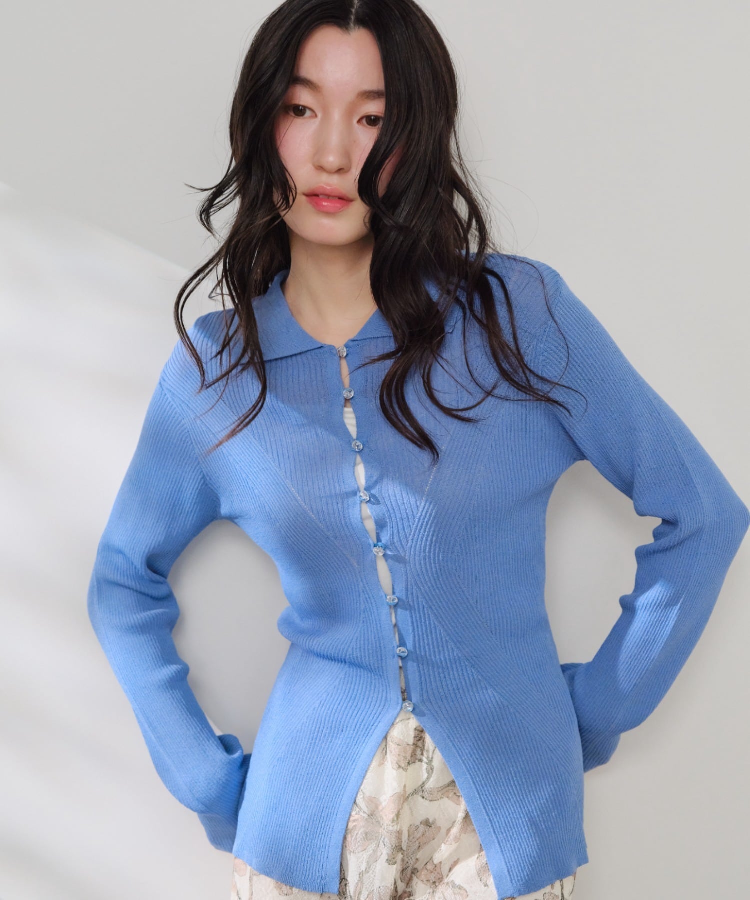 ・ポロ襟デザインとフロントの繊細ボタンが、大人の上品さを引き立てます。