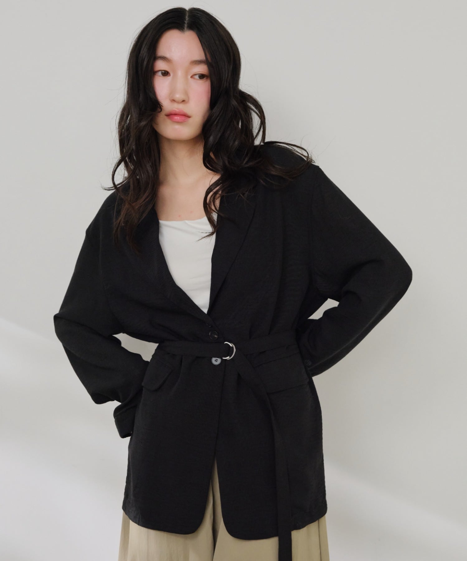 麻見えテラーベルト付きジャケット