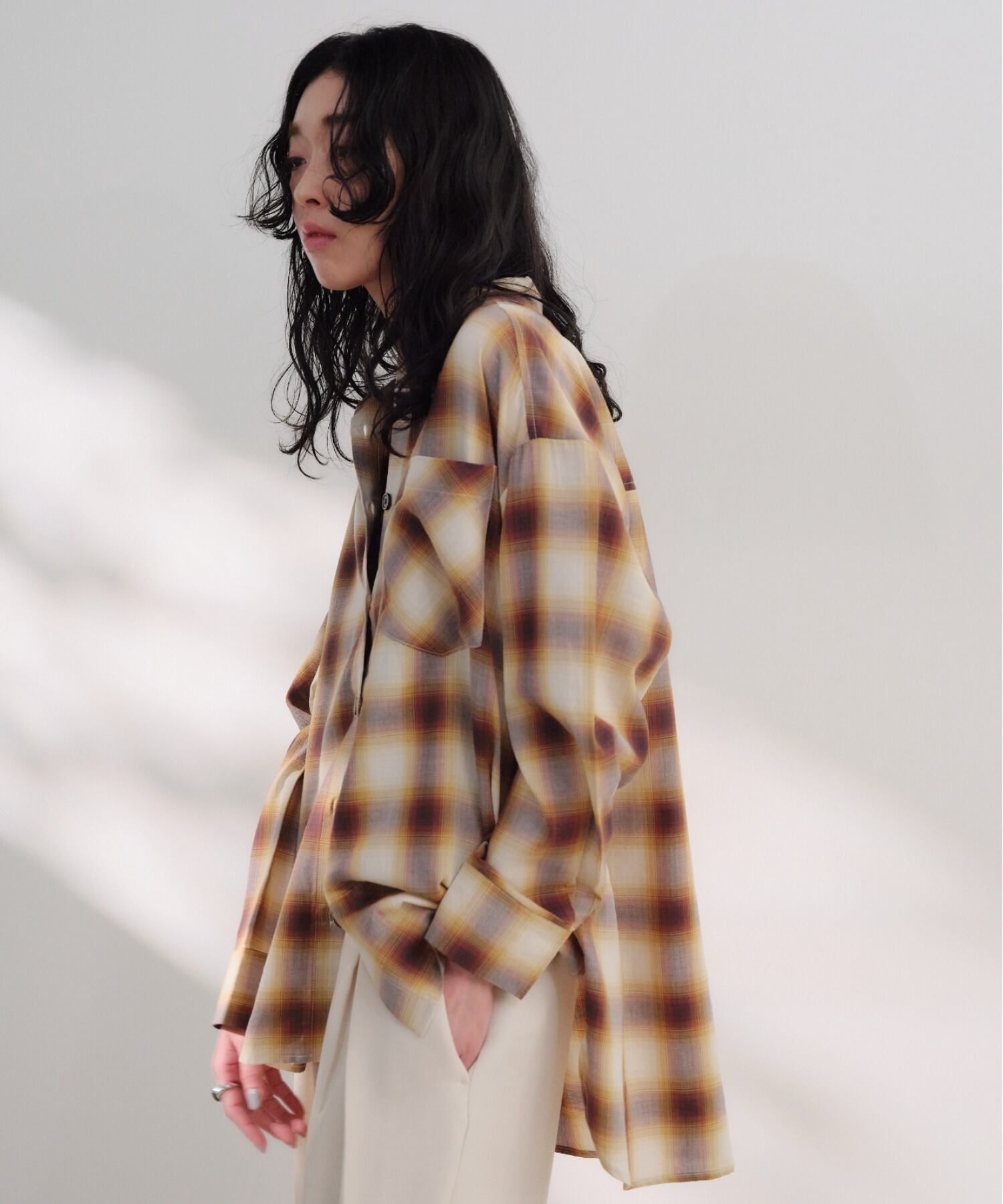 ・季節の変わり目にぴったりなチェックオーバーシャツ。