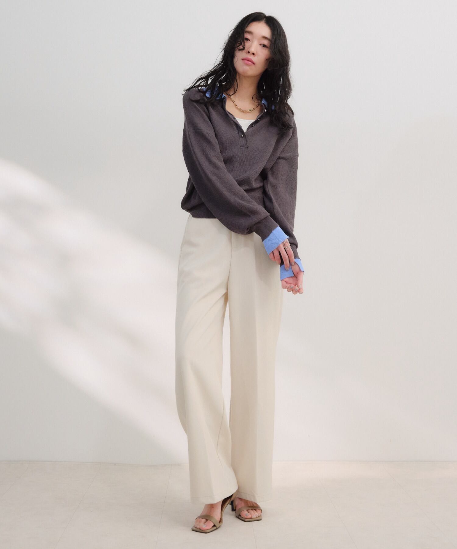 ・襟と袖口の配色デザインが効いた、レイヤード風のポロプルオーバー。