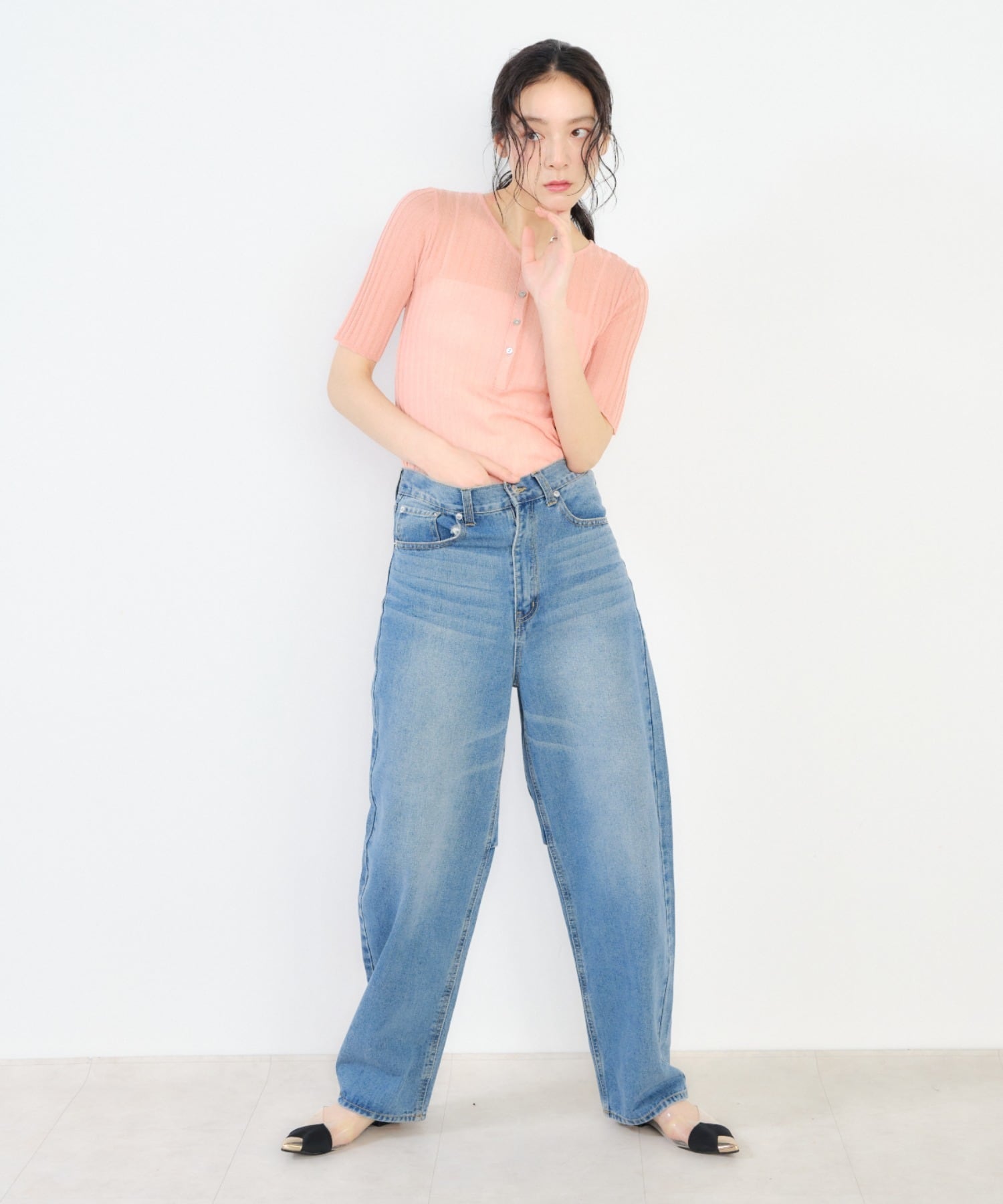 ・デニムやワイドパンツ、スカートなど幅広いボトムと相性が良く、デイリーコーデに活躍します。