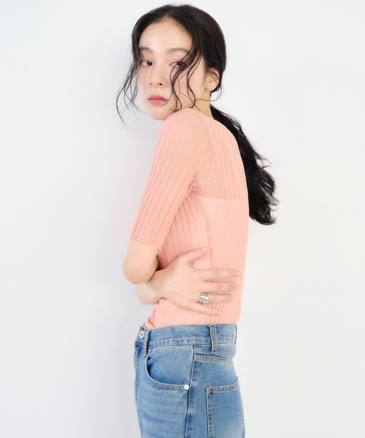 ・程よく体にフィットするリブ編みデザインで、