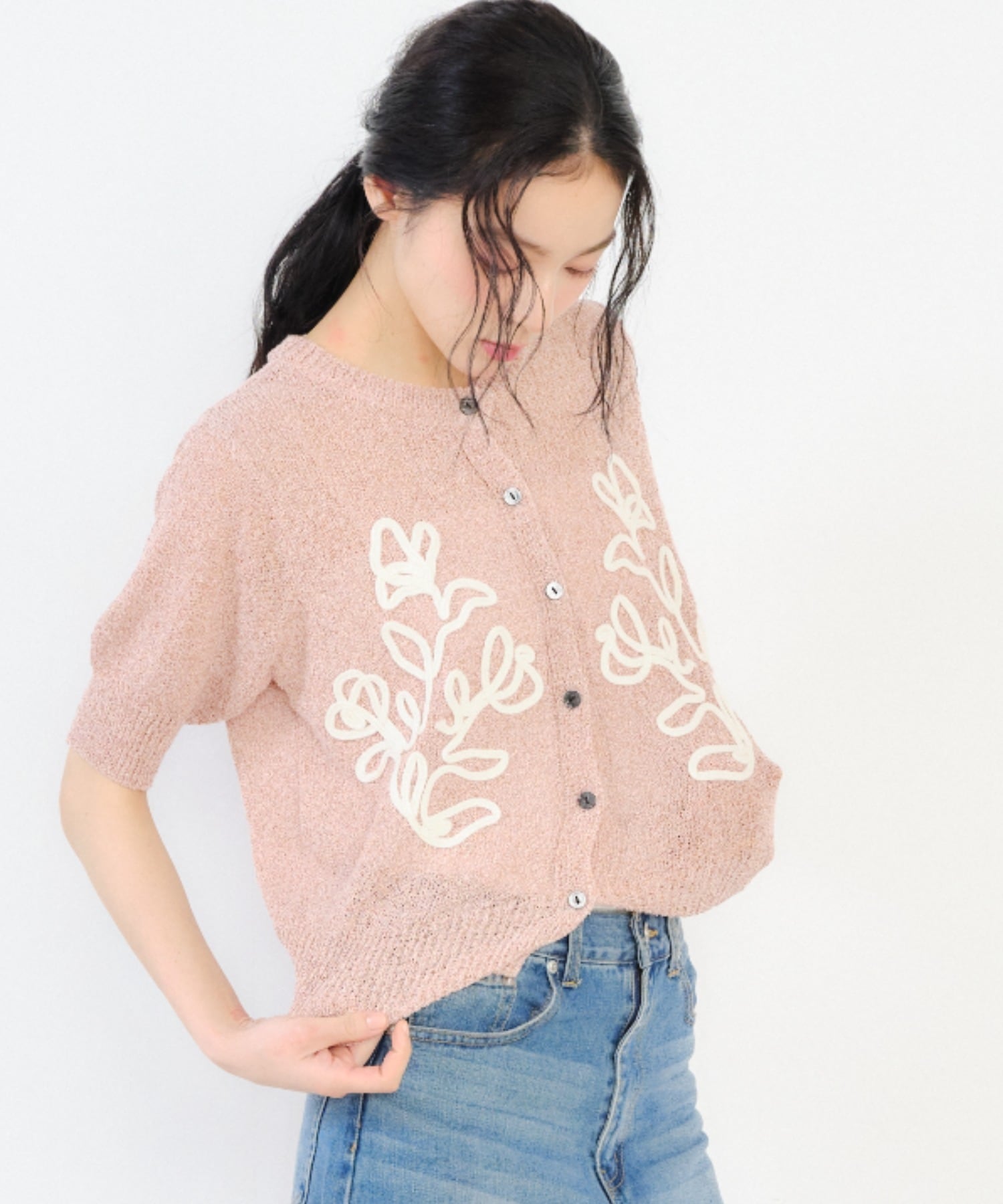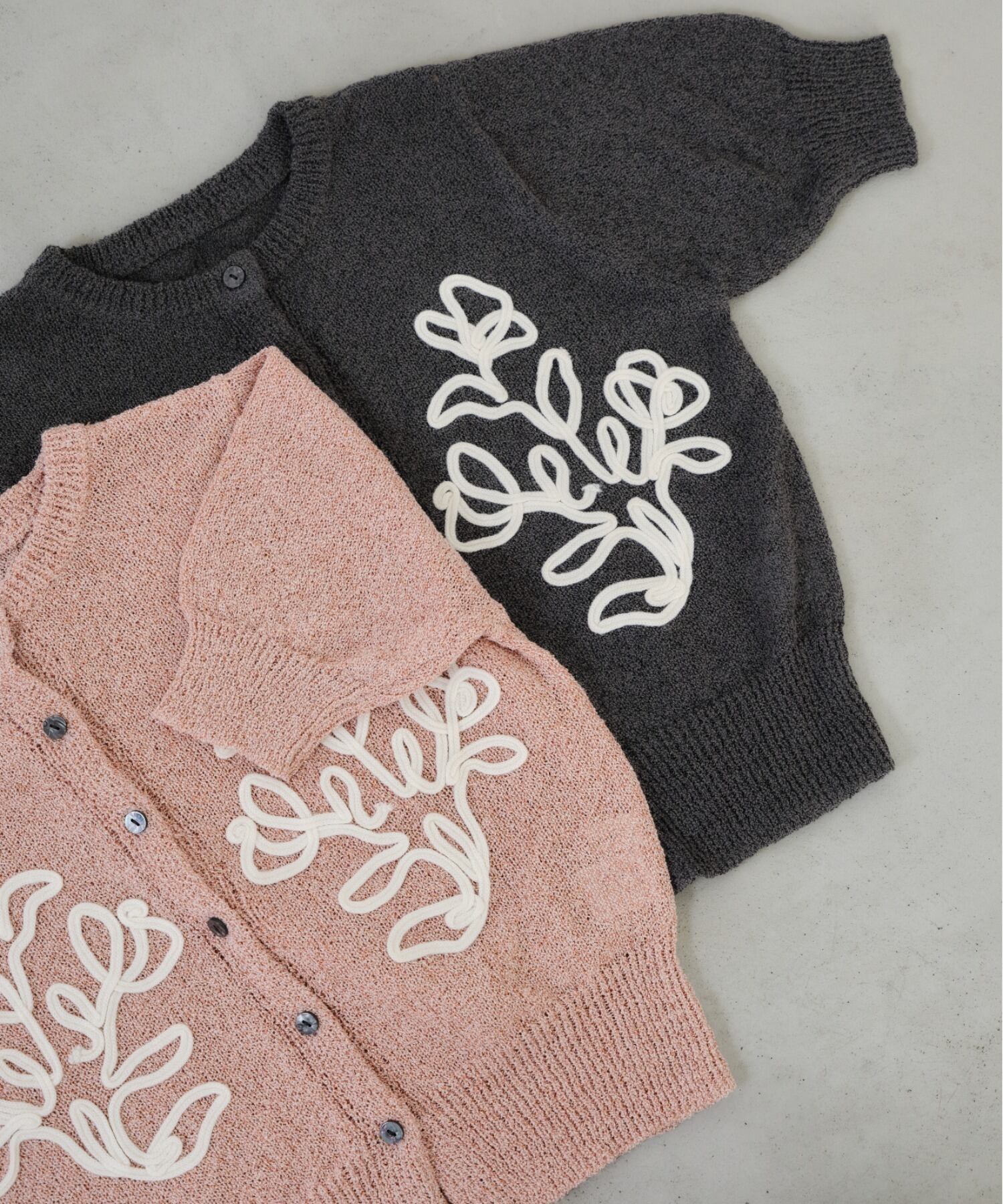 ・フロントのテープデザインが目を惹く半袖カーディガン。